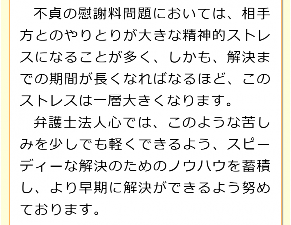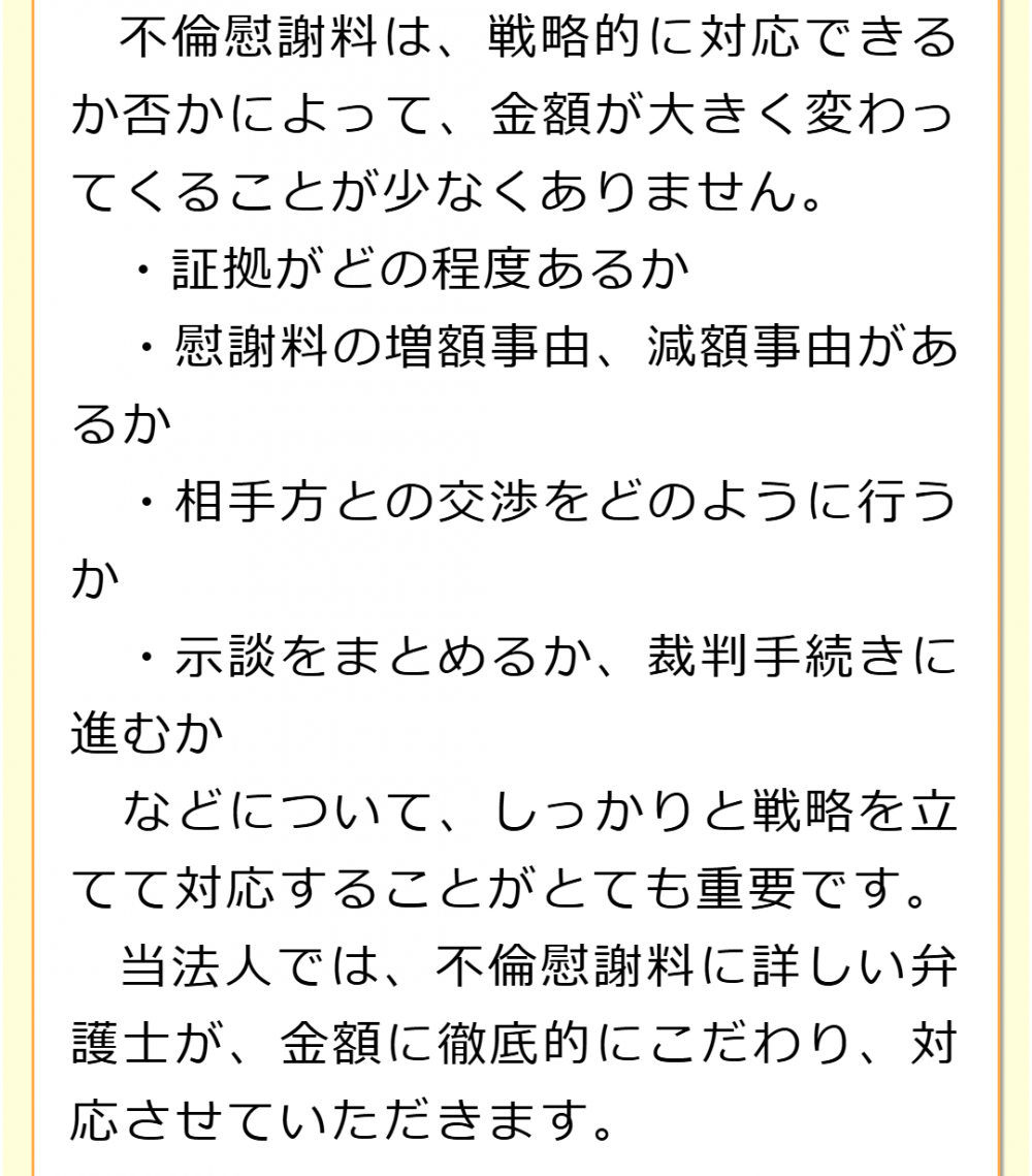 以上が不倫の慰謝料請求の大まかな流れですが、手続きを進めるにあたって、色々と不安に思うことや判断に迷うことが生じるかと思いますし、対応を誤ると、問題が大事になったり、想定していた慰謝料の金額を獲得できなくなってしまうおそれがあります。