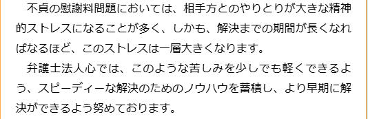 不倫の慰謝料を得意とする弁護士に相談し、的確なアドバイスを受けることで、適切に対応することができますし、弁護士に一任すれば、対応を任せることができるため、不倫慰謝料にかける労力を軽減でき、負担を減らすことができます。